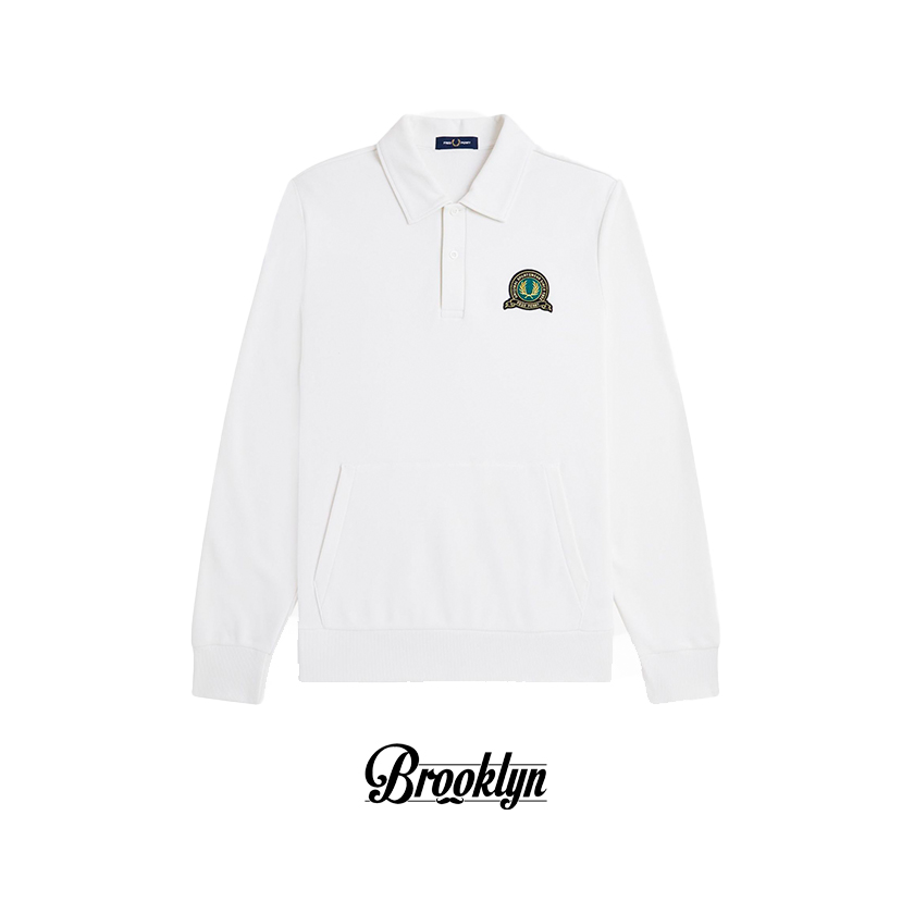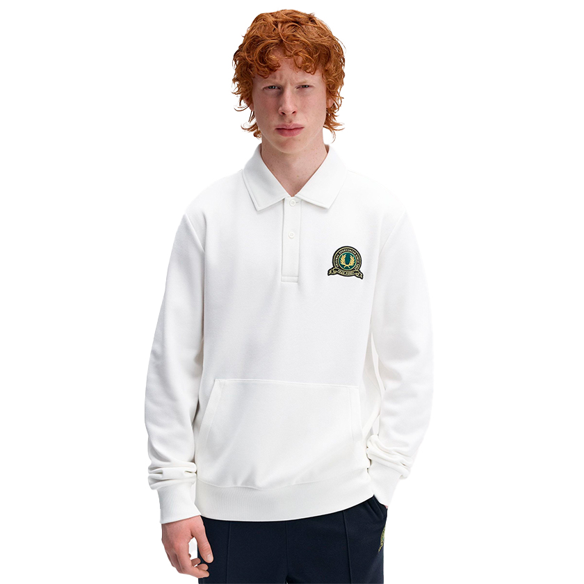 Aquí tienes tu «algo viejo, algo nuevo». Sacamos nuestro bordado de la insignia de tenis de los archivos para llevarlo a esta nueva sudadera con cuello y reverso de felpa. Una prenda clásica de los clubes de tenis, con un cuello elegante y tapeta tradicional de dos botones, completada con un amplio bolsillo delantero para tus pelotas de tenis o para tener tus efectos personales durante un festival.