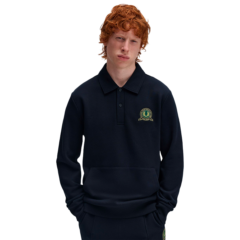 Aquí tienes tu «algo viejo, algo nuevo». Sacamos nuestro bordado de la insignia de tenis de los archivos para llevarlo a esta nueva sudadera con cuello y reverso de felpa. Una prenda clásica de los clubes de tenis, con un cuello elegante y tapeta tradicional de dos botones, completada con un amplio bolsillo delantero para tus pelotas de tenis o para tener tus efectos personales durante un festival.